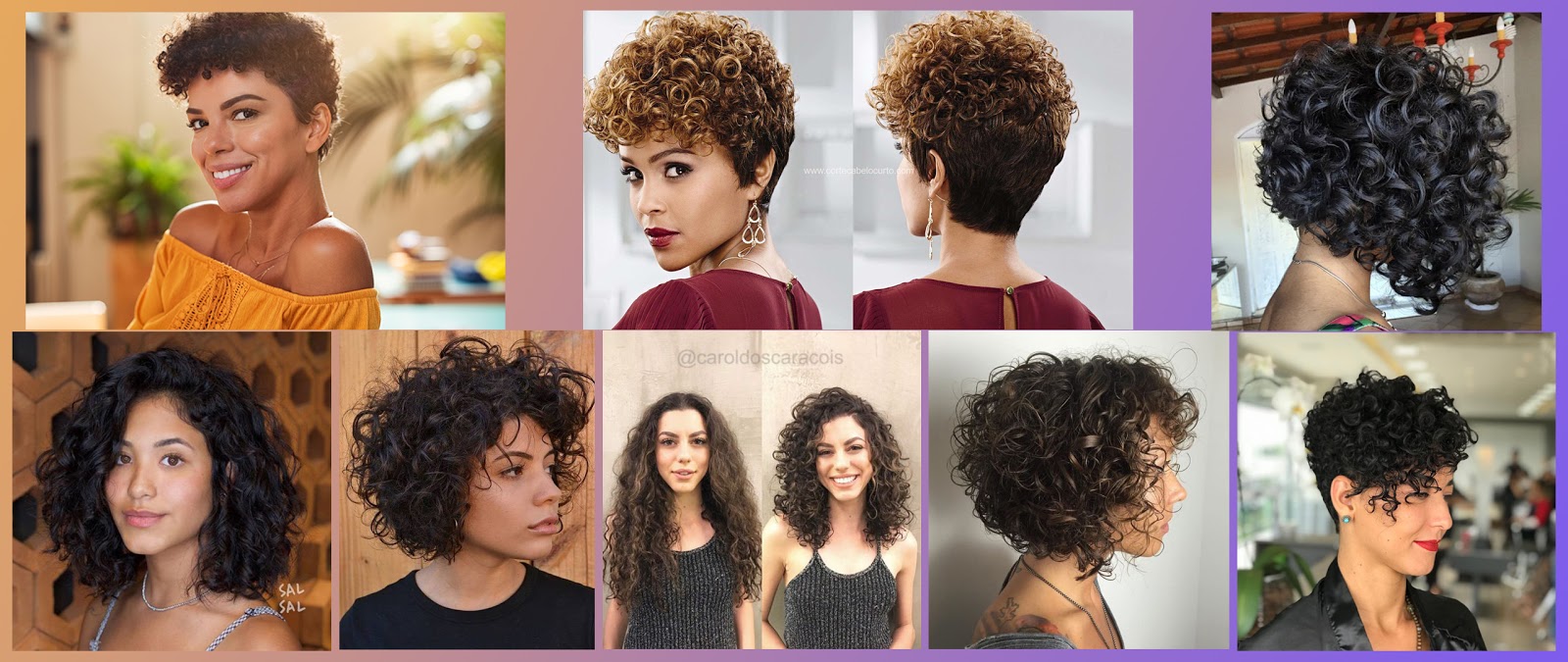 Fiz esse mural de fotos pra inspirar vocês com alguns cortes, espero que dê uma ajudada. E se joguem nos cabelos cacheados, sem medo!